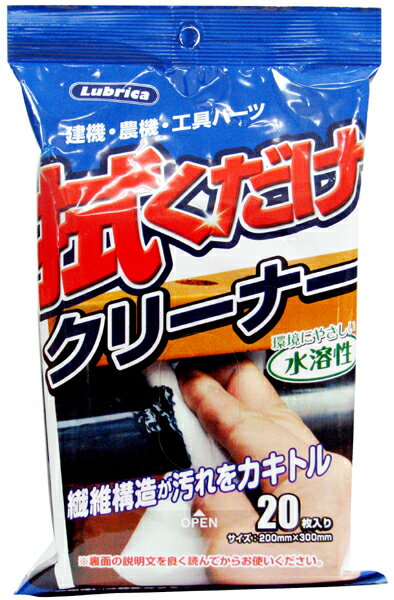 繊維構造が汚れをカキトル!Lubrica 建機・農機・工具パーツ 拭くだけクリーナー 水溶性 20枚入 200×300mm価格: 399円レビュー評価: 0.0 レビュー数:0 ■水溶性のクリーナーを配合し、油汚れ等をスピーディーにカキ取ります。■環境や人にやさしい水溶性タイプのクリーナーです。■プラスチックやゴム等の樹脂にもお使いになれます。■大判タイプなので、広い面もラクラク拭き取れます。■スプレータイプと比べ、液垂れしないので、床等周辺を汚しません。■使用後は燃えるゴミとして処理できます。<注意>※サビの発生の原因となる場合があるので、使用後は防錆処理をすること。※電子部品、精密機器等には使用しないこと。表示成分(安衛法):該当成分含有なしその他の成分:水、エチルアルコール、防腐剤※こちらの商品は厚さが2cmを超えておりますので、宅急便での発送となります。メール |